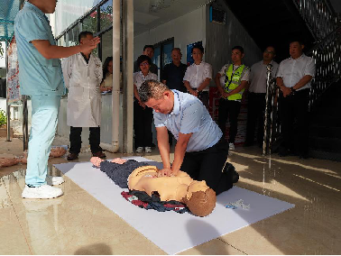 活动伊始,张凯致辞并宣布活动正式开始。随后,广西国际壮医院急诊科包一涵主任进行了应急救护理论培训和实际操作指导。通过此次培训,员工的应急救援的技能得到了进一步的提升。